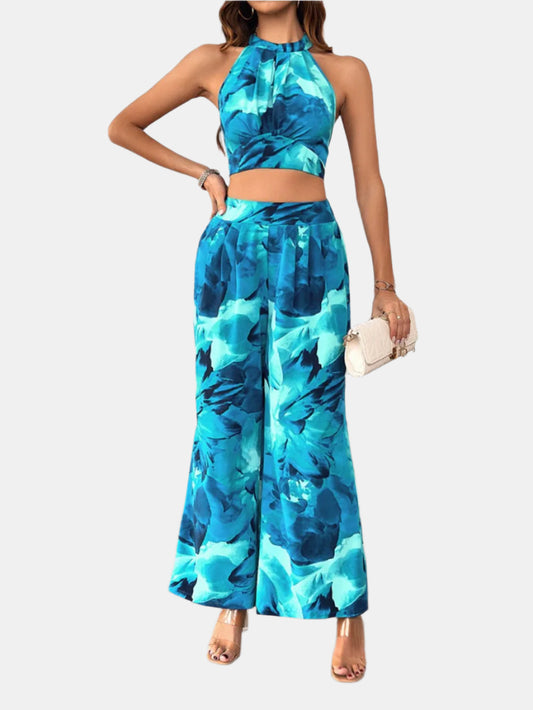 Seaside Vacation Sexy Polka Dot Split Top Mid-length Dress Set