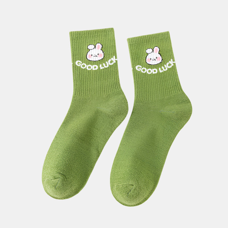Cartoon Rabbit Carrot Green Women Socks